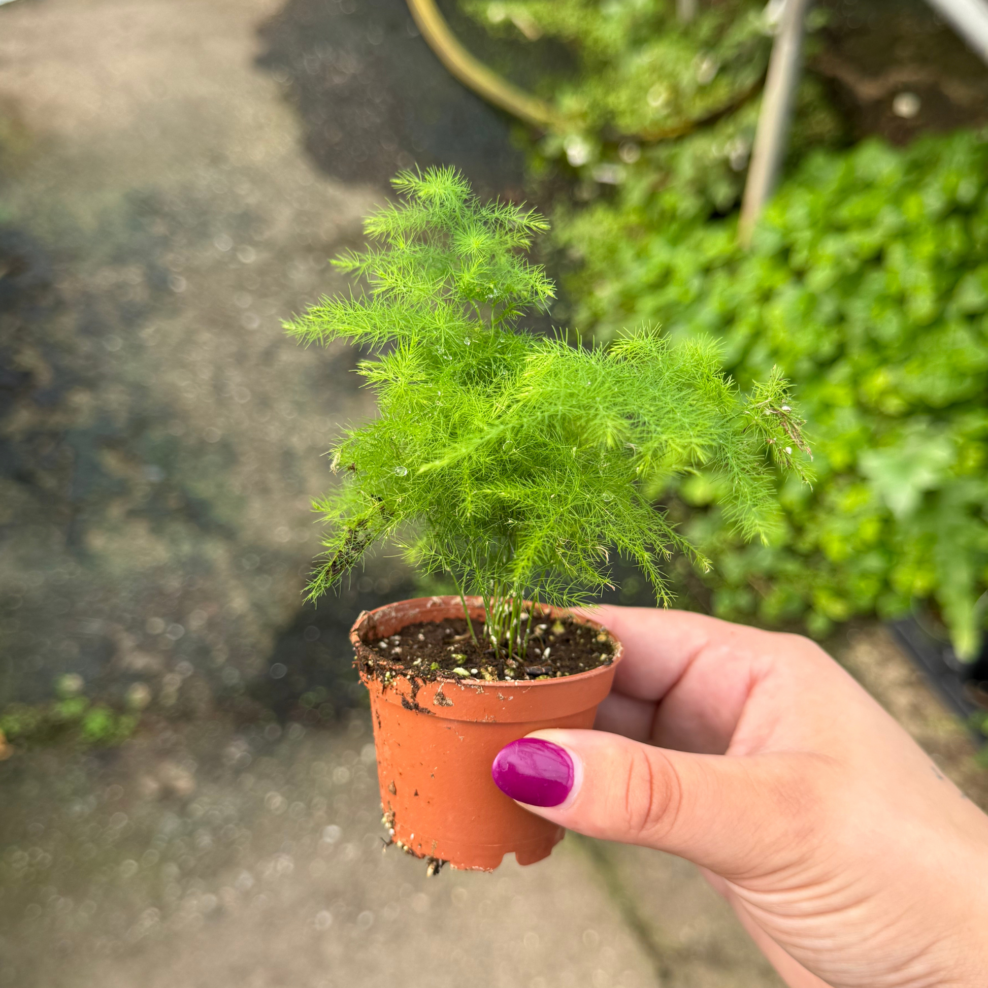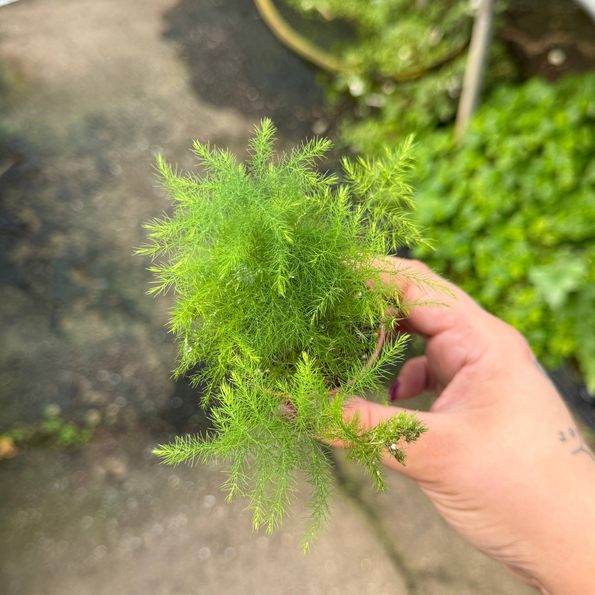 Don't let its dainty form trick you - the Asparagus fern will produce a thick display of soft, fine leaves. It will grow upright in a bushy form but may require support once it starts to get big. Its a blast of emerald at a glance but upon closer inspection, the feather-like leaves and gentle form is something to get lost in. Add it to your collection!