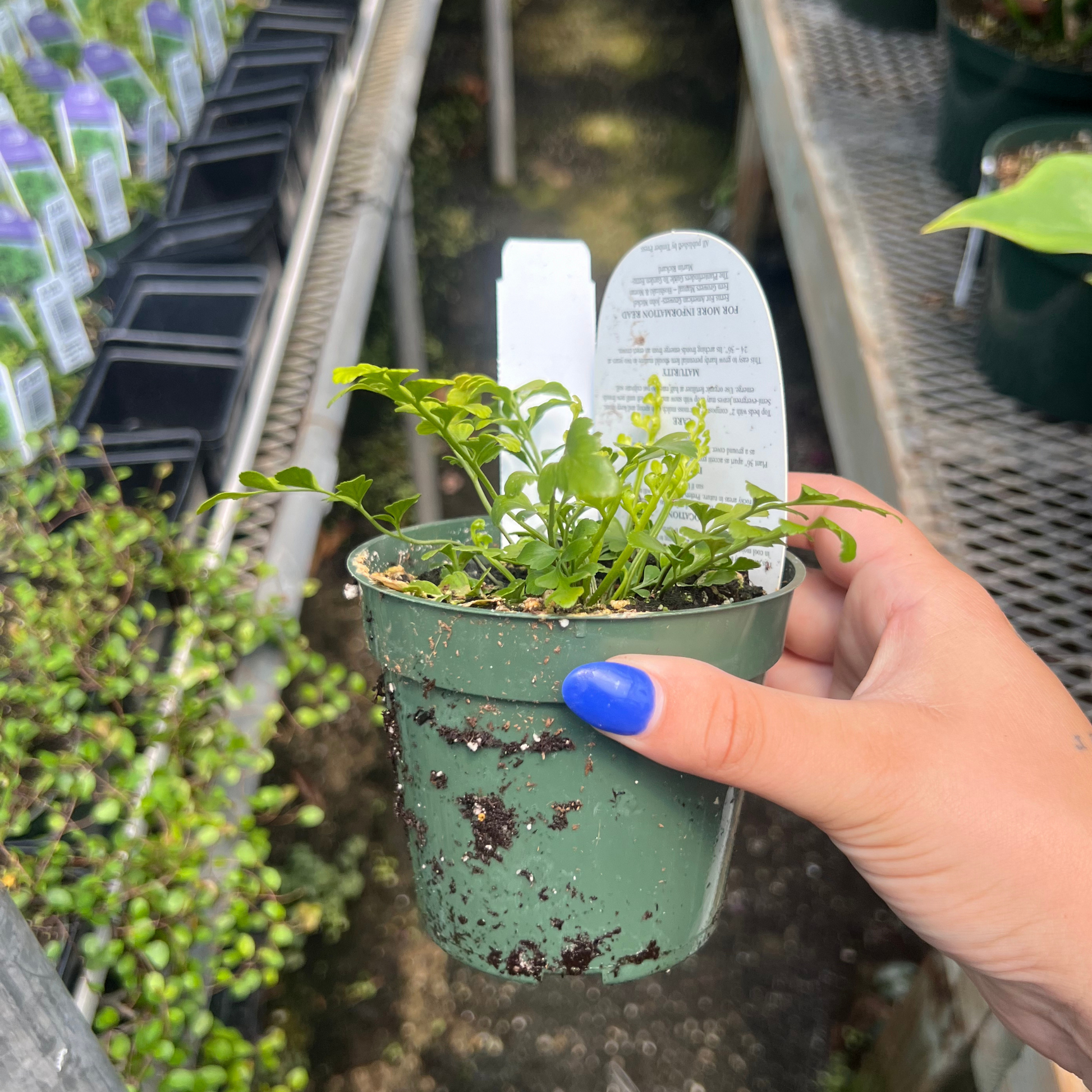 This fern features thick, glossy, and dark green fronds with a leathery texture. Unlike many ferns, the Austral Gem Fern has relatively wider and more substantial leaflets compared to other varieties. The fronds grow in a clumping form, creating a lush and textural effect.