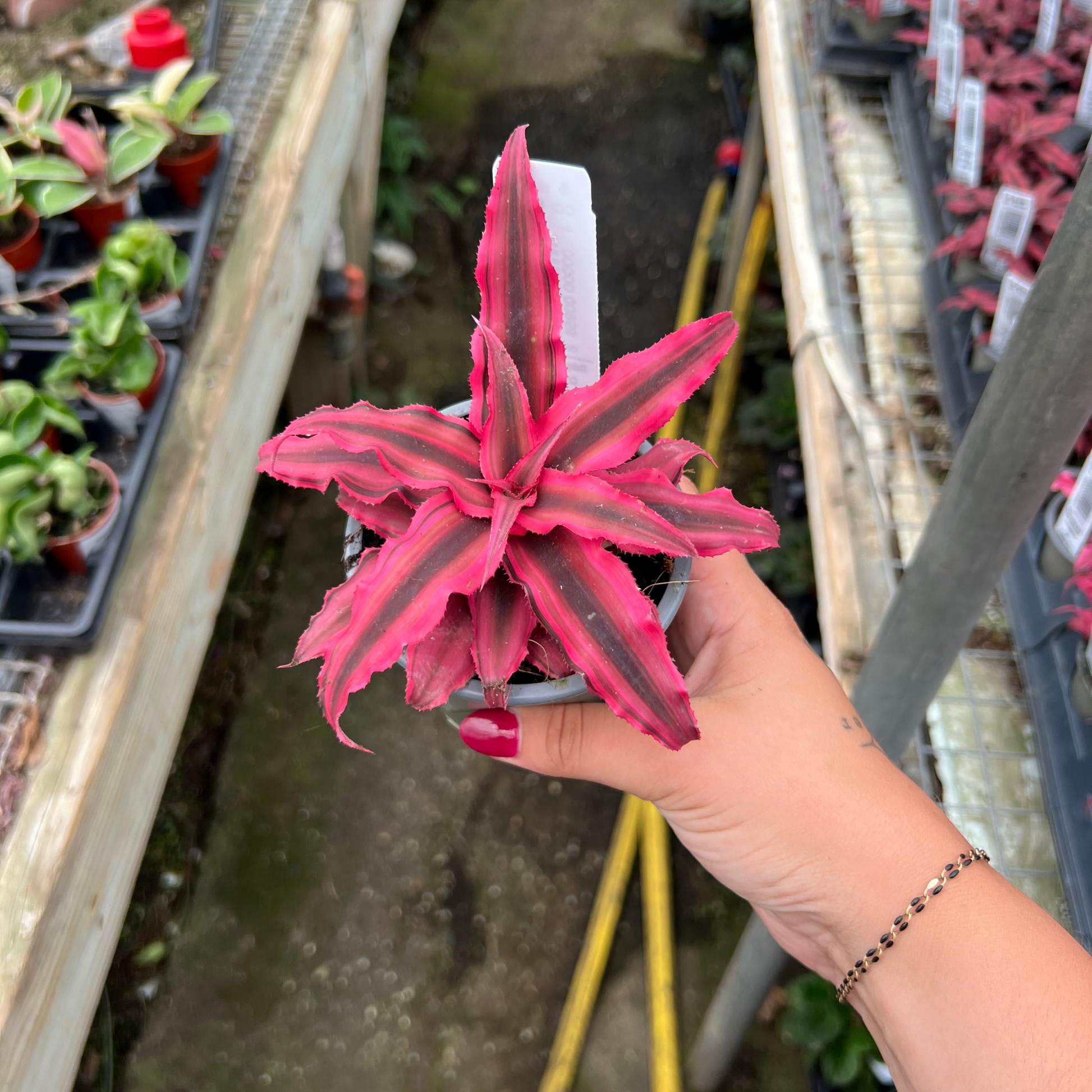 The Cryptanthus 'Ruby Red' is a captivating bromeliad that adds a fiery punch to any indoor space. Its striking foliage, characterized by deep, ruby-red hues and a unique star-shaped rosette, makes it a standout among houseplants.