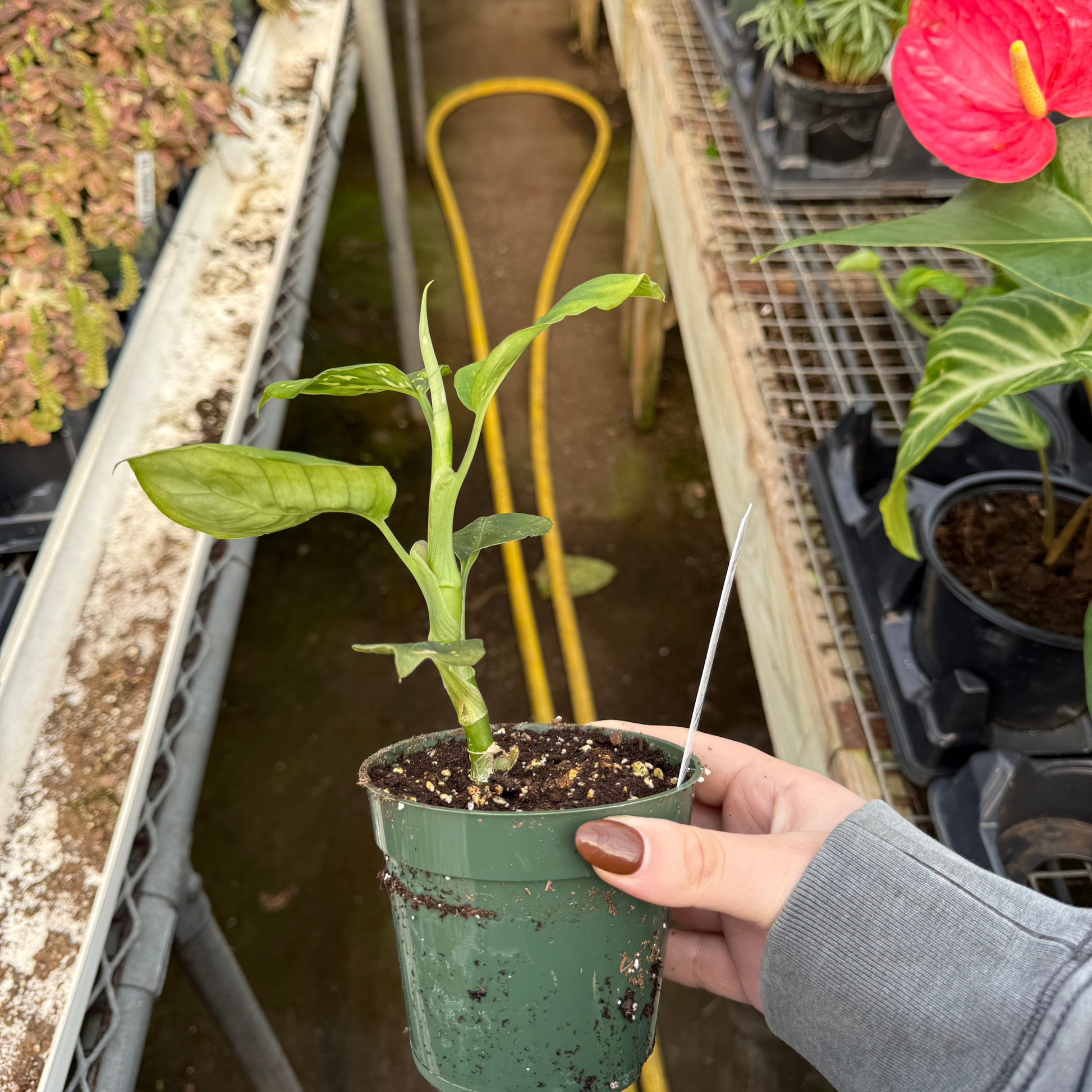 This Dieffenbachia is a stunning tropical houseplant known for its large, glossy leaves with striking silver and green variegation. Its bold foliage catches the light beautifully, adding depth and vibrancy to any indoor space. Ideal as a statement piece, Dieffenbachia ‘Reflector’ brings elegance and lush tropical charm to your home or office.