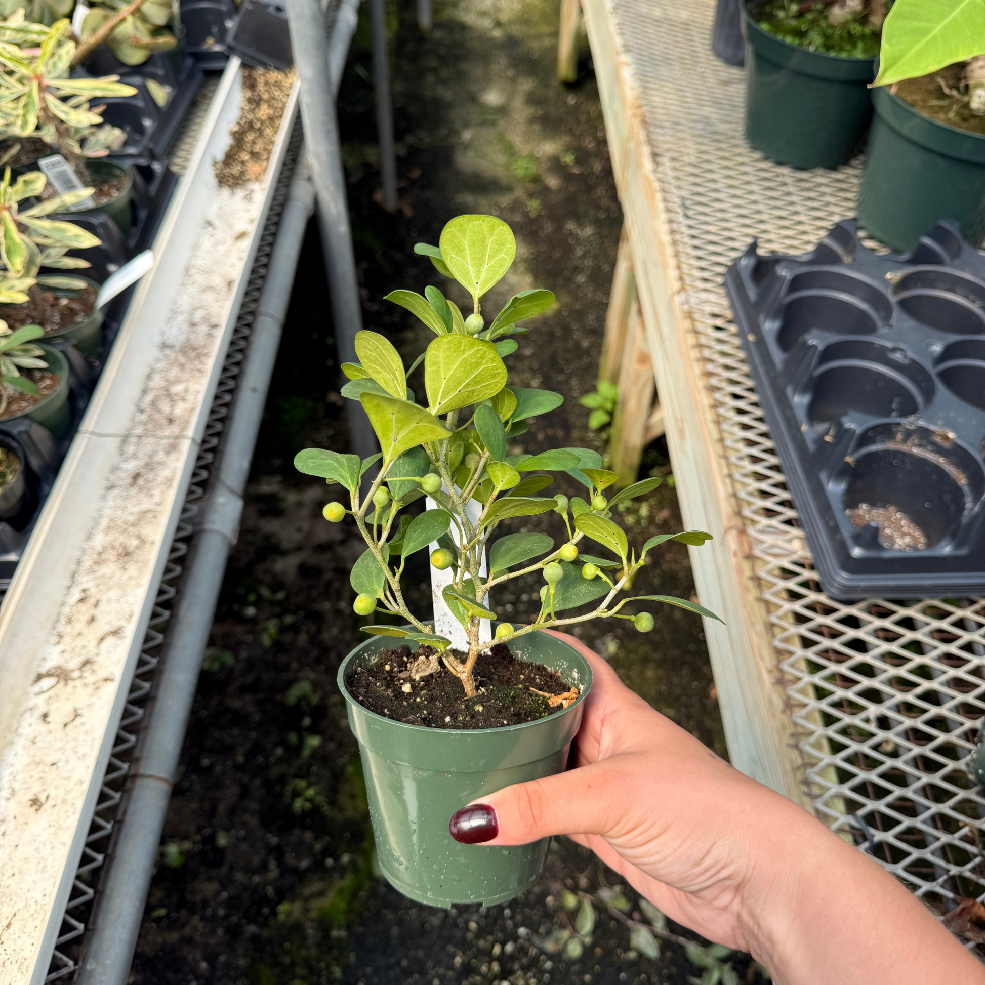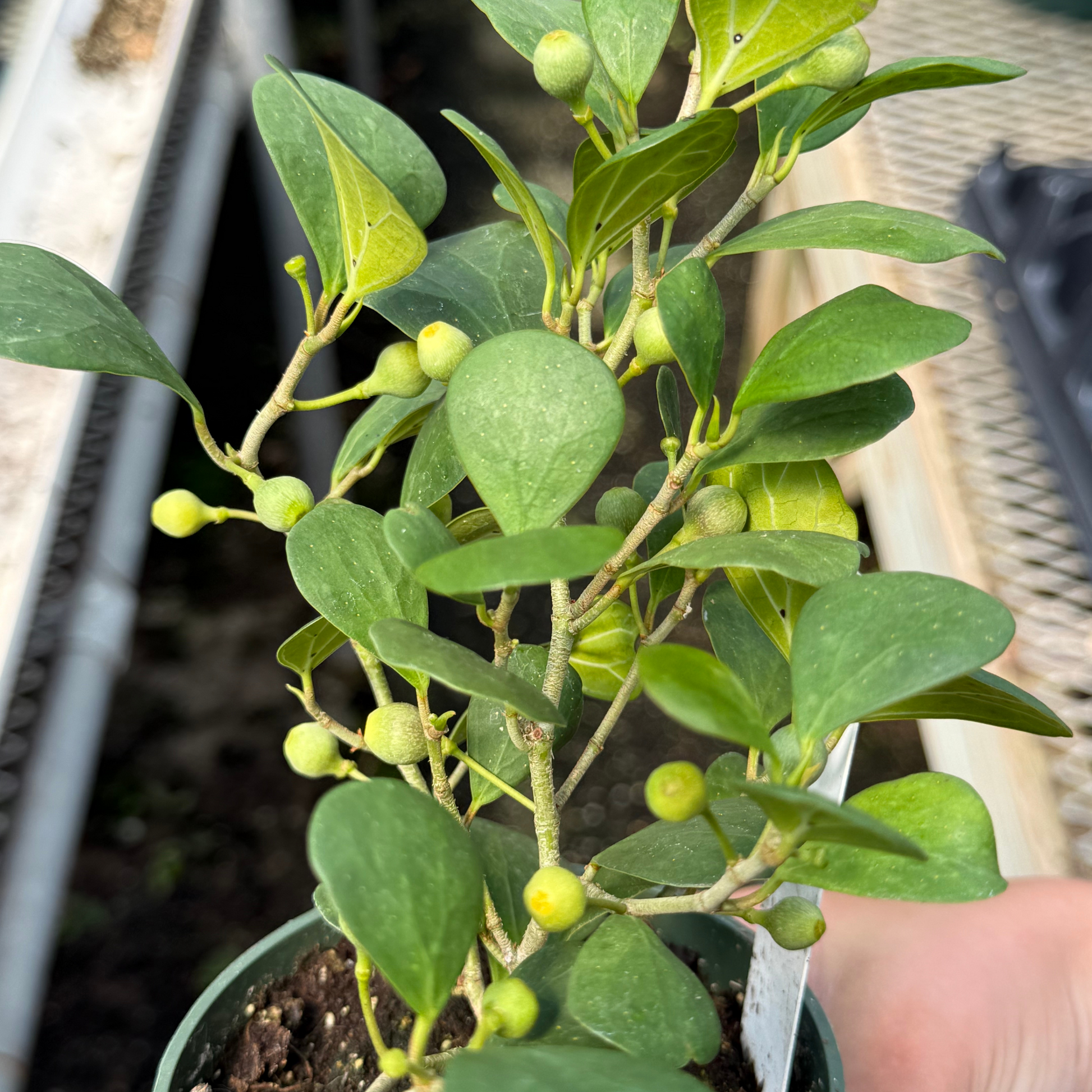 This little tree produces stunning brown leaves and non-edible figs grow along the branches. The rounded leaves have some texture to them and are a stunning green color. You can grow it like a bush or prune it into a tree shape.