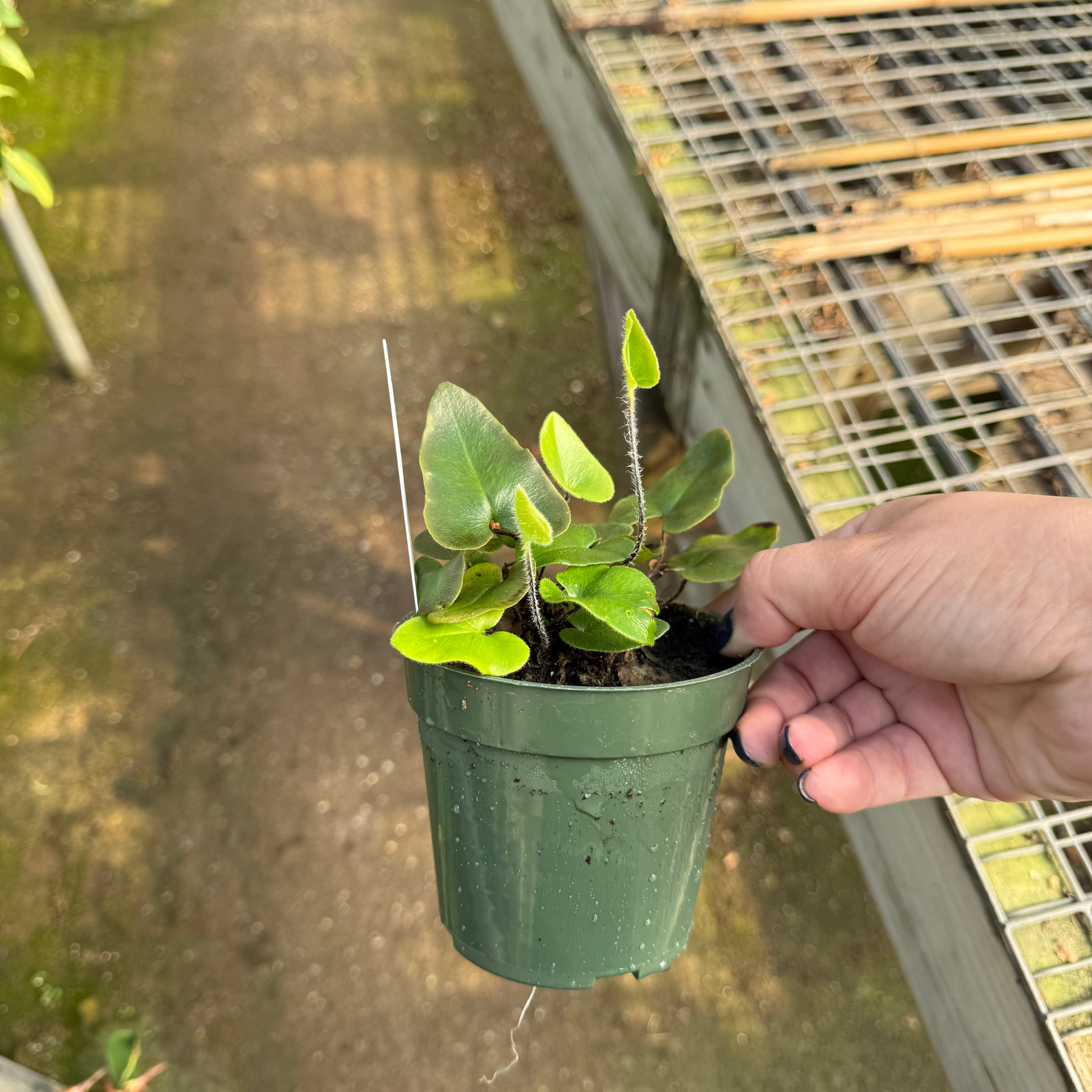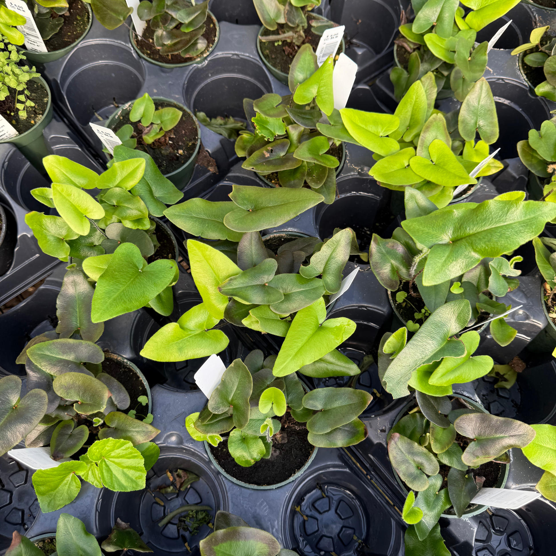 Unique and festive dark leathery heart-shaped fronds for small pots.