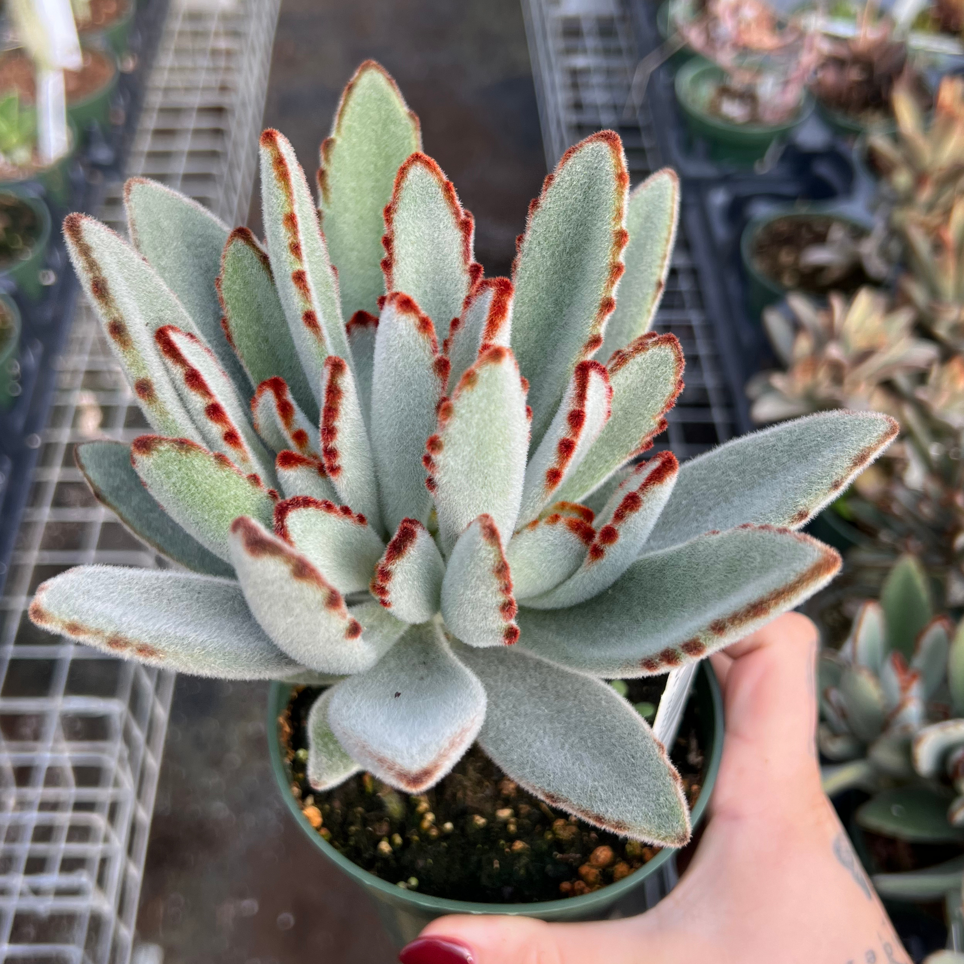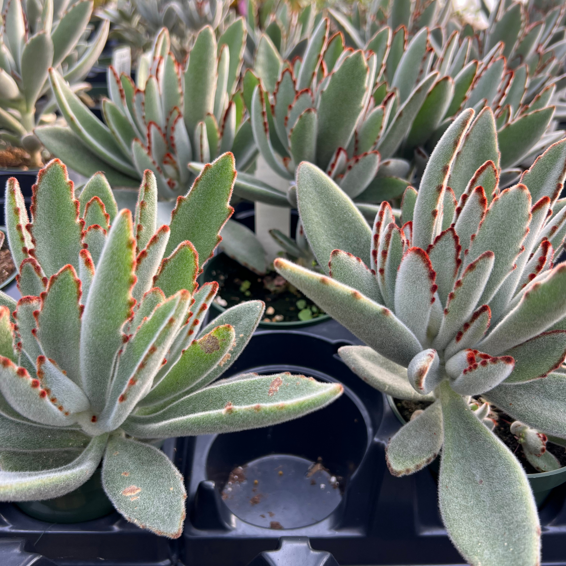 This unique succulent is known as a Panda Plant due to its red spotty edges and fuzzy leaves! These grow upright fro the most part and are great indoors!