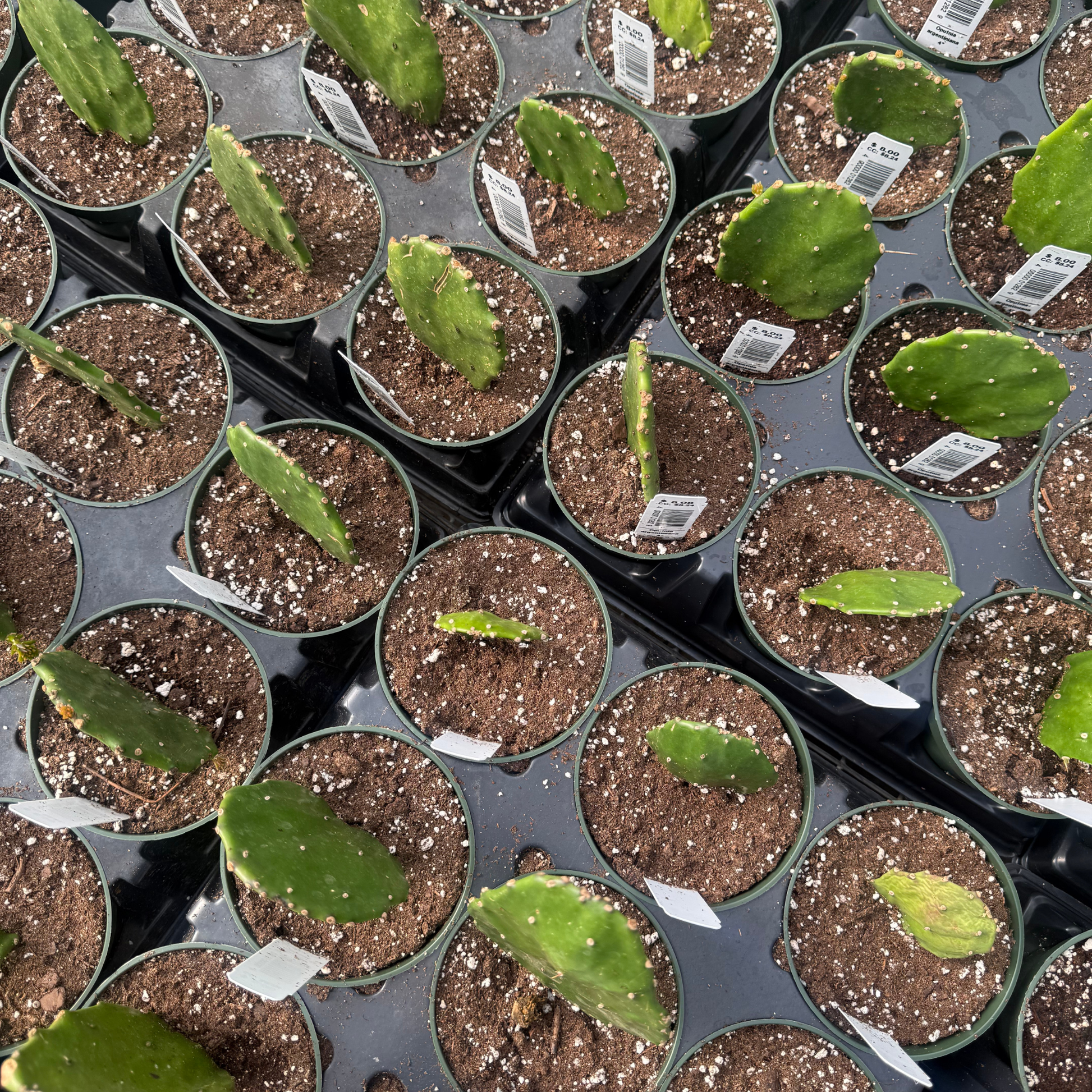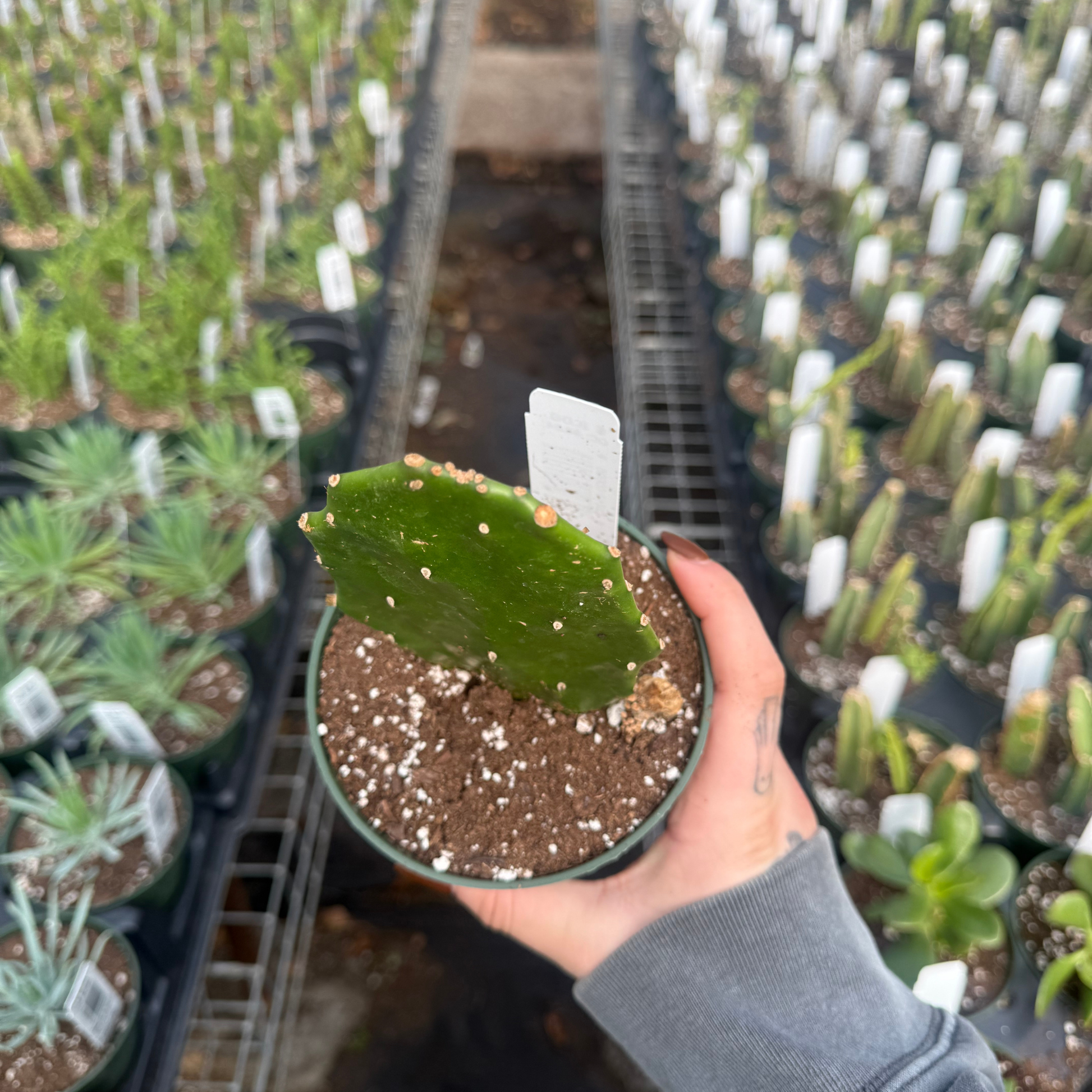 This Optunia is a distinctive, hardy cactus known for its rounded pads, soft blue-green color, and clusters of golden spines. This South American species thrives in bright light and dry conditions, making it an easy, low-maintenance choice for cactus lovers. Its sculptural form and occasional yellow blooms add desert charm to any indoor or outdoor collection.